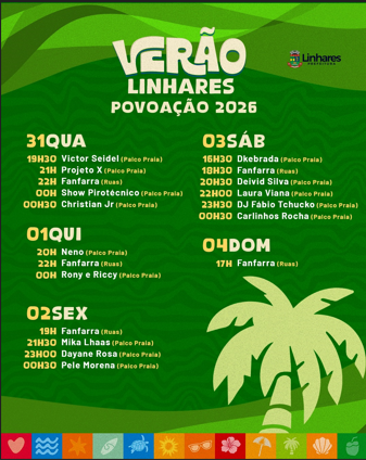 A programação conta com 5 dias de festa: de quarta-feira, dia 31, até domingo, dia 4 de janeiro de 2026. São mais de 40 apresentações de artistas locais e regionais. Os destaques ficam por conta das atrações nacionais: