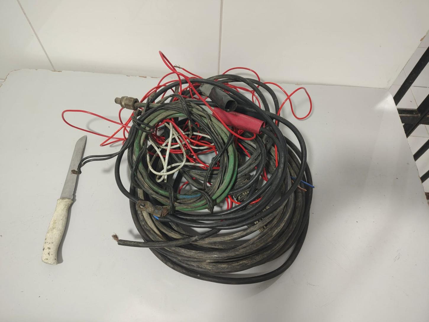 Com os detidos, os agentes encontraram cerca de quatro quilos de cabos de cobre cortados, furtados da loja, além da faca utilizada na ameaça.
