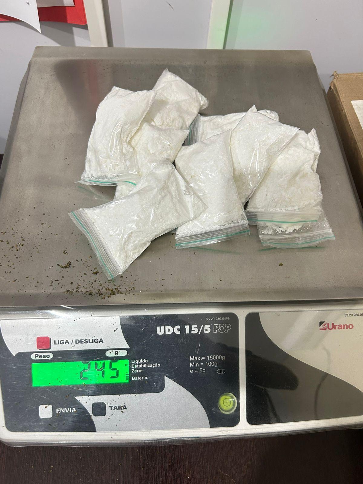 Os Policiais aguardaram a aproximação do ônibus e o abordaram, dentro do veículo estava o elemento suspeito, PAULO HENRIQUE GONÇALVES SANTOS, 23 anos de idade, morador de São Jorge de Tiradentes, Rio Bananal, durante a abordagem e com apoio da Cadela do K9, foi encontrado uma mochila preta, com 245 de gramas de cocaína, que ainda iria ser diluída e vendida em Rio Bananal.
