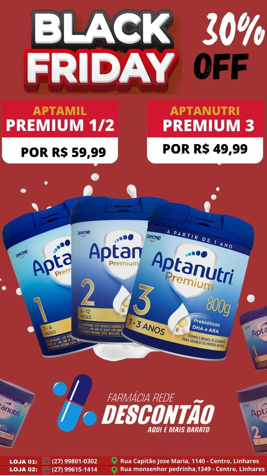 A Rede Descontao anunciou preços de Black Friday no leite Aptanutri 1, 2, e 3.