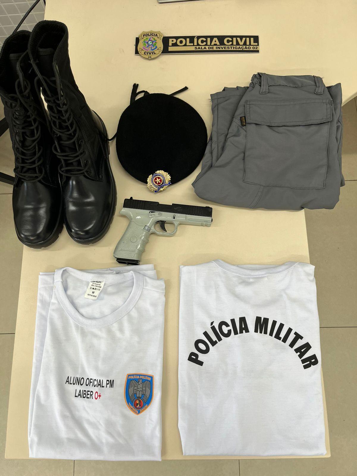 A Polícia Civil do Espírito Santo (PCES), por meio da 9ª Delegacia Regional de Itapemirim, apreendeu, nesta quinta-feira (16), materiais utilizados por um homem de 20 anos que se passava por aluno do Curso de Formação de Oficiais da Polícia Militar do Espírito Santo (PMES) em redes sociais.